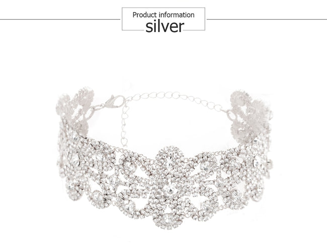 Stunning Platinum Floral Crystal Choker